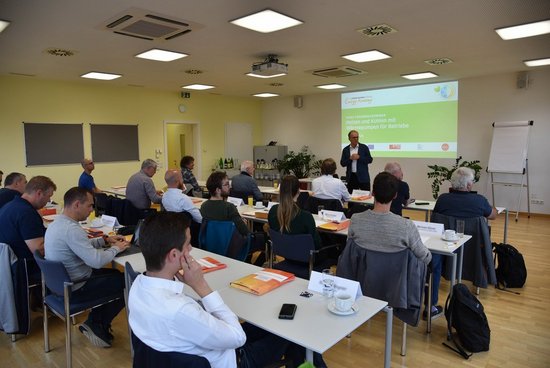 Das Trainingsseminar gab den 21 TeilnehmerInnen einen Überblick über verschiedene Optionen für den Einsatz von Wärmepumpen zum Heizen und Kühlen von Betriebsgebäuden. Im Mittelpunkt standen Informationen zu verschiedenen Systemen und Umsetzungsmöglichkeiten sowie zu Kosten für Investitionen und Betrieb. Informationen zu aktuellen Förderprogrammen und Beispiele aus Unternehmen ergänzten das Programm.