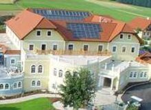 Der Gasthof Kemetmüller in Windischgartsten, bekannt für das besondere unfiltrierte Bier aus der eigenen Gasthausbrauerei, dem KEMÜ-Bier, hat eine 28 m² große Solaranlage installiert. Der Name des Gasthofs "Goldene Sonne" paßt damit genau zum Erscheinungsbild mit Solaranlage.