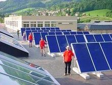 Die 80 m² große Solaranlage auf der Stadthalle Kirchdorf, die als Mehrzweckhalle Verwendung findet, ist seit 2 Jahren in Betrieb. Die Stadt wollte Energiespar-maßnahmen setzen und entschloss daher, eine Solaranlage auf der Stadthalle zu installieren. Genutzt wird die Solaranlage zur Warmwasserbereitung und für die Fußbodenheizung. Der Betreiber ist sehr zufrieden mit der Anlage. Die Stadthalle dient zum Sportunterricht für Schulen, als Trainingsraum für Sportvereine und am Wochenende für Veranstaltungen (Bälle, Kabarett, Sportwettbewerbe).