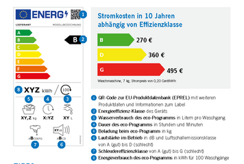 Das neue Energie-Pickerl bewertet auf einer Skala von A (gut) bis G (schlecht). An die besten Energieeffizienz-Klassen werden sehr hohe Anforderungen gestellt. Kaufen Sie Geräte der besten Effizienzklasse, die bereits angeboten wird.