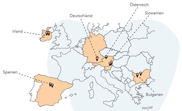 Wir sind eine Gruppe von 12 Projektpartnern aus sechs verschiedenen EU-Ländern. Das Projekt unterstützt die Energiegemeinschaften abhängig von den länderspezifischen Rahmenbedingungen.
