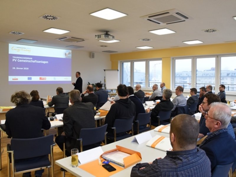 Das Kurz-Trainingsseminar informierte die 26 TeilnehmerInnen über rechtliche und organisatorische Aspekte, die es bei der Umsetzung von PV-Gemeinschaftsanlagen zu beachten gilt. Praxiserfahrung und Erkenntnisse aus bereits realisierten Projekten ergänzten das Programm.