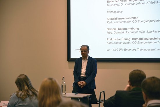Das Trainingsseminar mit 29 TeilnehmerInnen informierte über die Erstellung von Energie- und Klimabilanzen und die Möglichkeiten, daraus Maßnahmen zur CO2-Reduktion abzuleiten, um im Unternehmen auf dem Weg zur Klimaneutralität voranzukommen. Die TeilnehmerInnen erwarben das Know-how zur Erstellung einer Energie- und Klimabilanz für das eigene Unternehmen und erarbeiteten mit Hilfe eines neuen Online-Tools eine individuelle Test-Bilanz. Diese umfasste Scope 1 (direkte Emissionen), Scope 2 (indirekte Emissionen aus eingekaufter Energie) und Scope 3 (indirekte Emissionen entlang der Wertschöpfungskette des Unternehmens).