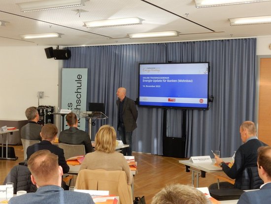 Das Kurz-Trainingsseminar richtete sich an MitarbeiterInnen von Banken, die sich einen Überblick über aktuelle Entwicklungen und Förderungen rund um das Energiethema im Einfamilienhausbereich verschaffen wollen. Es bot den 40 TeilnehmerInnen ein Förder-Update, Informationen zu Technologietrends rund ums Bauen und Heizen, wie z.B. Photovoltaik, Stromspeicher und E-Mobilität.