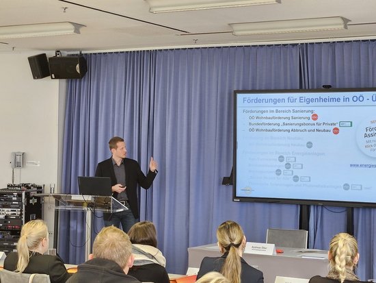 Das Kurz-Trainingsseminar mit 47 TeilnehmerInnen richtete sich an MitarbeiterInnen von Banken, die sich einen Überblick über aktuelle Entwicklungen und Förderungen rund um das Energiethema im Einfamilienhausbereich verschaffen wollten. Es bot ein Förder-Update sowie Informationen zu Technologietrends rund ums Bauen und Heizen, wie z.B. Photovoltaik, Stromspeicher und E-Mobilität.