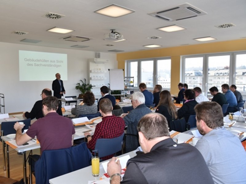 Das Trainingsseminar widmete sich den Fassaden im Wohnbau. Die 24 TeilnehmerInnen wurden über die Auswahl geeigneter Materialien, die richtige Dämmung und Ausführung, Dampfbremsen, konstruktiver Schutz der Fassade, Putze und Farben sowie Reinigung und Sanierung informiert.