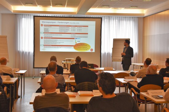 Das Trainingsseminar bot den 41 TeilnehmerInnen einen Überblick über die verschiedenen Wärmepumpen-Systeme und deren Einsatzbereiche im Neubau und in der Sanierung in Einfamilien- und Reihenhäusern. Es informierte über die baulichen Anforderungen für einen effizienten Wärmepumpen-Einsatz sowie über die sinnvolle Kombination mit Photovoltaik-Anlagen. Ein Förderüberblick und praktische Beispiele rundeten die Seminarinhalte ab.